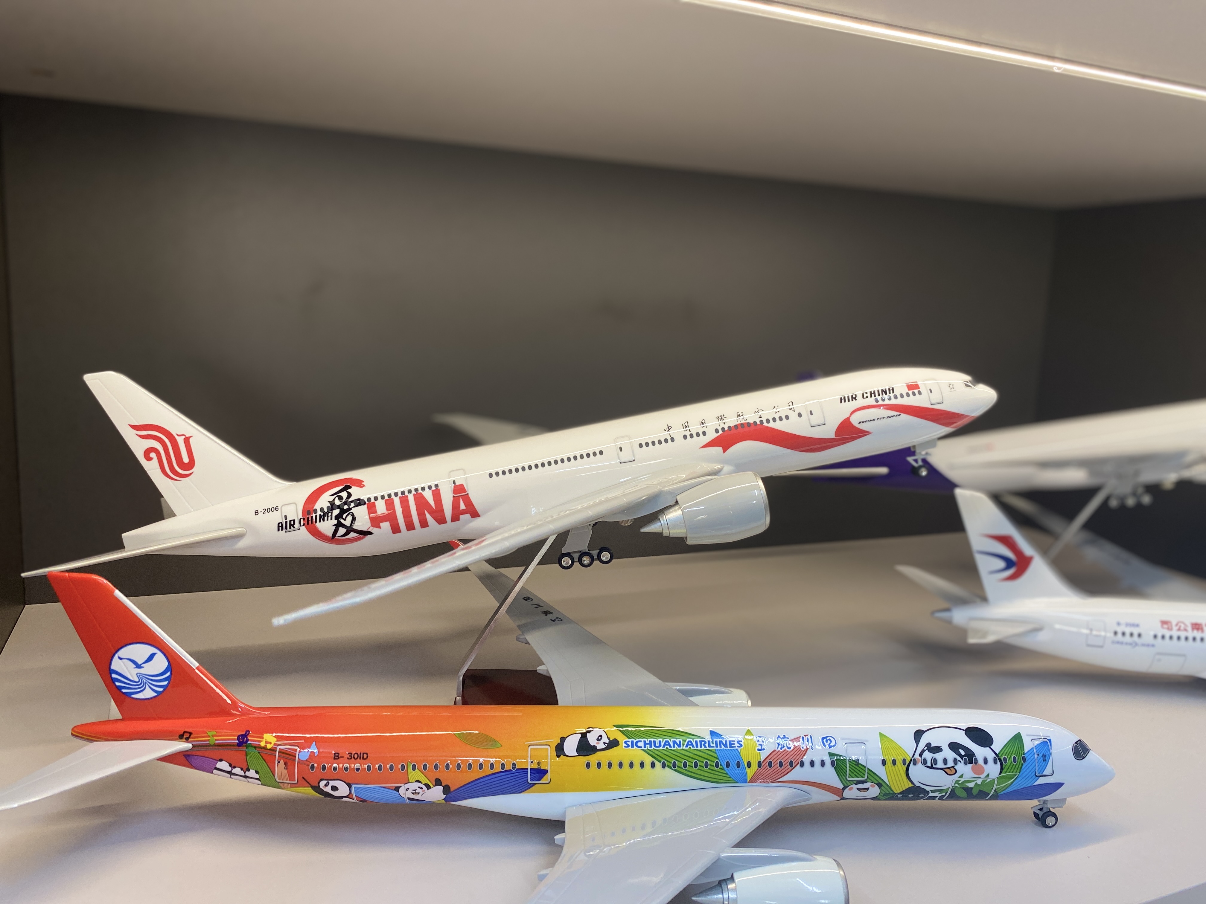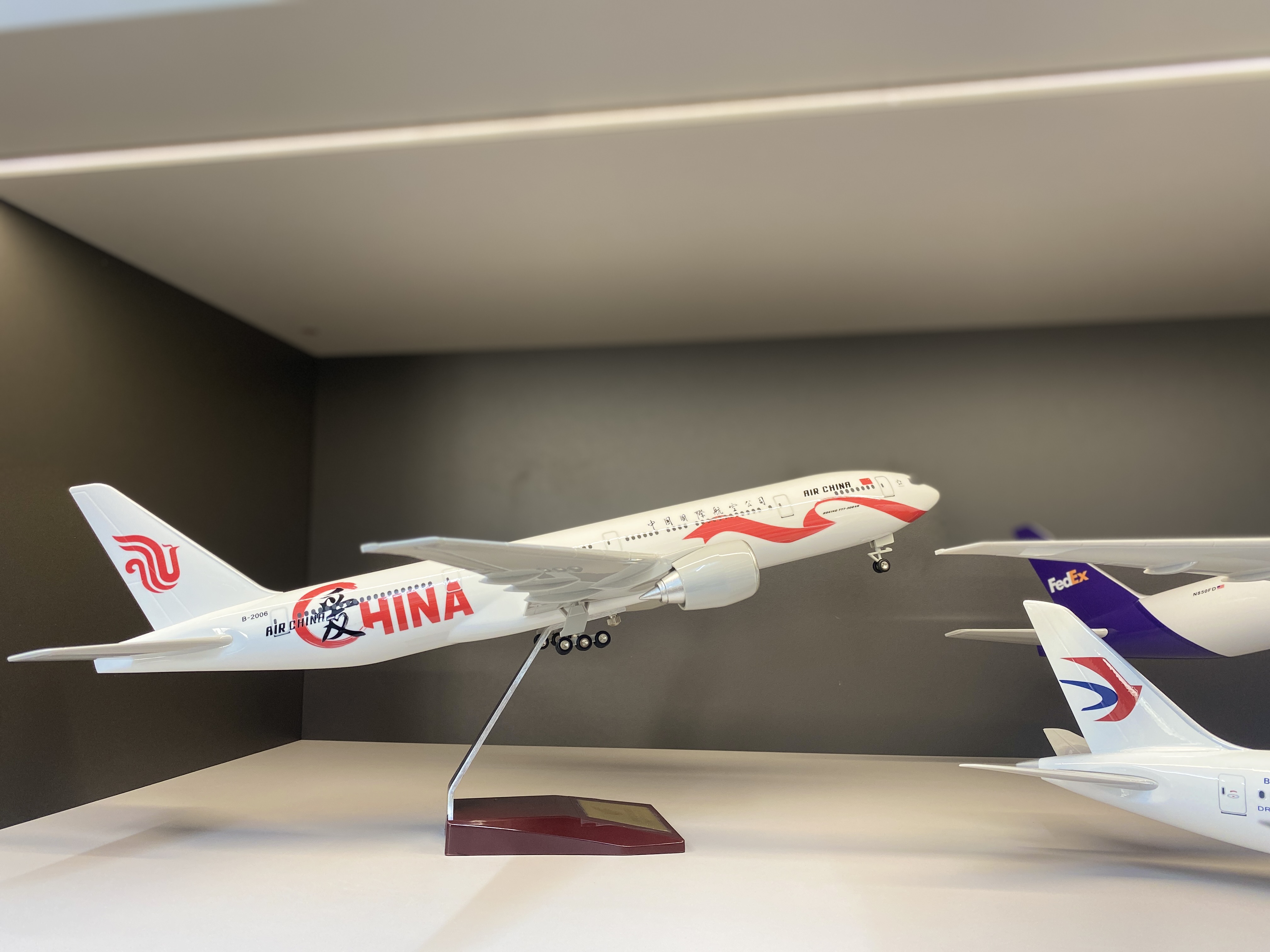 這款模型完美還原了中國國際航空愛中華B777的外形和細節(jié),鏤空的引擎和仿真度極高的起落架,套裝還贈送底座支架,這款模型無輪是收藏還是送禮都非常合適。